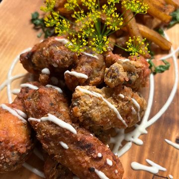 One pound of crispy chicken wings with your choice of sauce. Served with golden in-house cut fries. (Sauce options: Honey Garlic, Sweet Chilli or Spicy Buffalo)