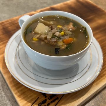 A Trini style soup with a flavourful chicken broth, shredded tender chicken, seasonal vegetables & provisions, dumplings, and aromatic