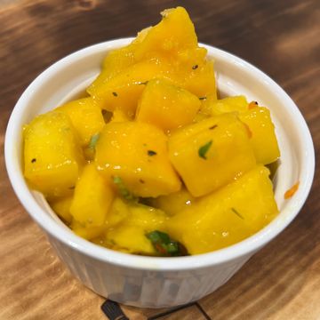 Our Tropical Mango Salad presents prime mango slices mixed in a judicious blend of fresh herbs and a citrus-chili vinaigrette.