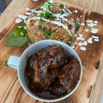 Tender, slow-braised oxtail in a rich demiglace, paired with wok-fried rice, a house-made XO sauce, and torched seasonal vegetables.